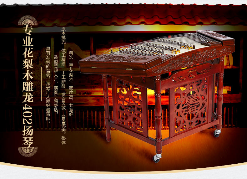 星海402揚(yáng)琴花梨木雕龍揚(yáng)琴